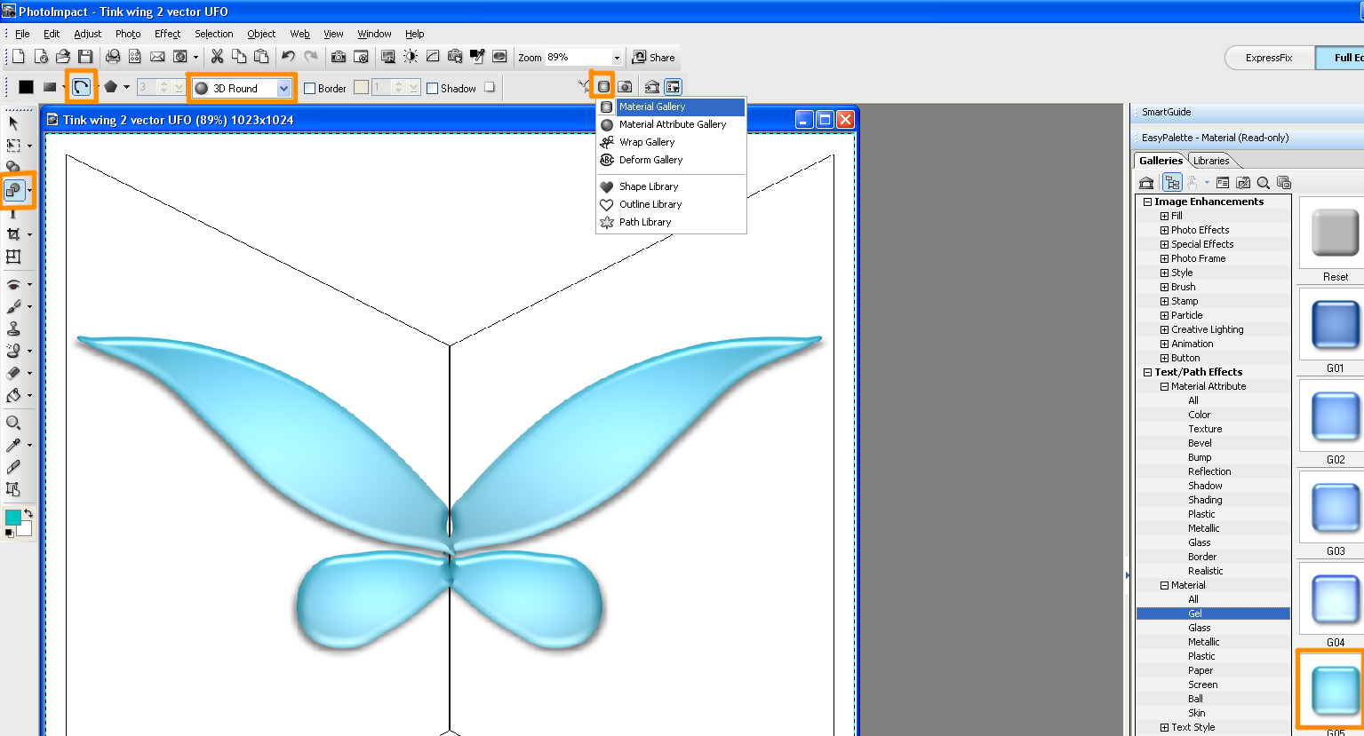 Here is a sample animation; the pixie wings and raindrop were spline-drawn in PI12, the glitter starbursts were Bezier-drawn in PI11, the lightning generated in GA5. They were all imported into my 3D program and the animation frames rendered out, then finally I compiled them in GA5.