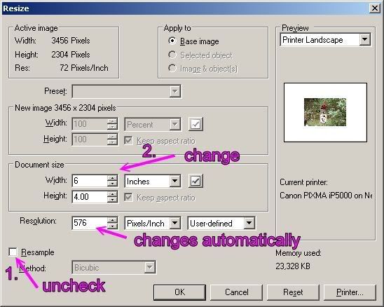 I know I am not totally understanding this resolution stuff, but I refer back to the days when I used PSP. When I used this method, after importing my pics, I got outstanding detail in my printouts.