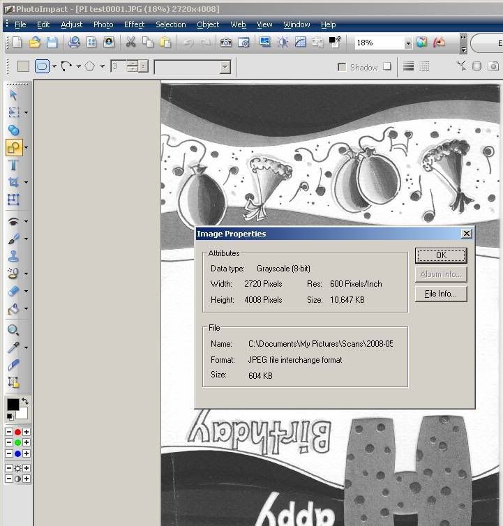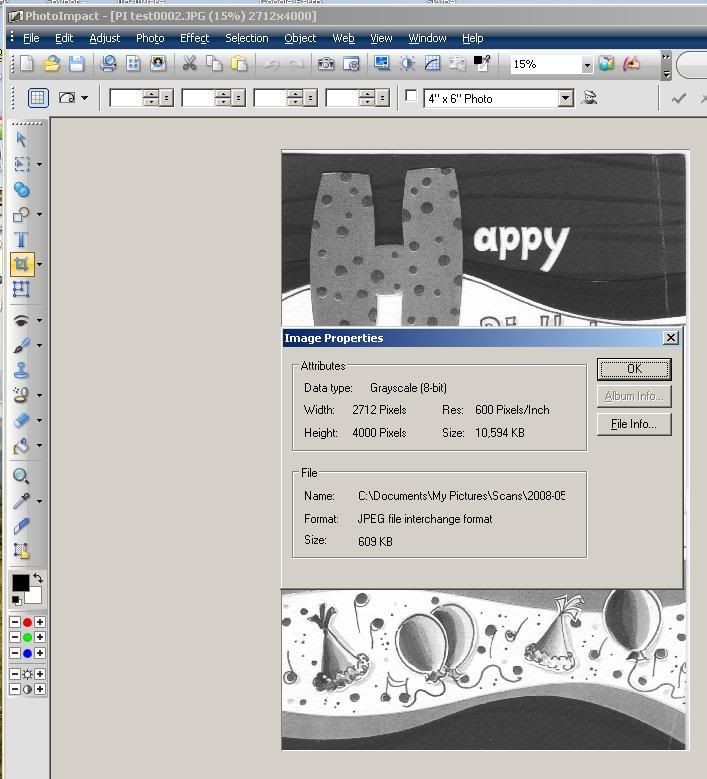 Ok, Let¡¦s try this again, from the beginning ¡K. I¡¦m trying to make a searchable catalog of a Class Yearbook ¡K. Like the on-line pdf catalogs you see at auto part sites and such. It¡¦s a project for my brother¡¦s 35th class reunion. He thought it would be nice to put it on CD Rom or DVD Rom, depending on final size of the project, and hand them out to alumni. Since the yearbook is printed magazine style, scanning it in at 600 dpi allows for better removal of the Moire effect (checker boarding) you get from scanning items such as this. When scanning the yearbook, due to size constraints, every other page is scanned upside down and has to be rotated 180 degrees as well as some of the pages needing minor touch-ups due to the book¡¦s age. I was using Photoshop 7, which is now 6 years old, to do the repairs. A friend turned me on to PhotoImpact 12. Since I already use Ulead¡¦s VideoStudio, and like the program, I thought upgrading to PhotoImact would be good. There¡¦s a supplement to the yearbook consisting of about 20 pages, I figured I¡¦d start with that. I scanned all the pages in at 600 dpi, no problems. I opened every other page with PI 12 to rotate them the 180, then closed and saved each after they were rotated. The size readings of the jpg¡¦s shown, before and after the rotation, in the top of the window (5100x7019 example) never changed, so I thought nothing was done other than rotating it. I then opened Acrobat Pro to make the pdf, directed it to the 20 jpg¡¦s and let it do its work. I opened the resulting pdf file to find every other page as shown in my previous message, one large and one small. The larger pages were the ones I had rotated with PI 12. The first thing I did was try a different program (Nuance PDF Pro) (And please, you¡¦re a moderator, if you want to remove the other program names feel free, I¡¦m not promoting them, just letting you know how I arrived at the problem), and came up with the same result. It was then I noticed the dpi of the PI 12 jpg¡¦s were 72 and the untouched ones were 600. I opened each jpg that I rotated with PI 12 in PS7 and reset the dpi to 600. I used PS7 because when I opened them in PI 12 it showed them as already being at 600 (2nd posted pic). Then I retried making the pdf with both programs (Nuance & Acrobat) and everything was fine ¡K.. All I wanted to know is how to get PI 12 to save the pictures at their original 600 dpi. I posted jpg¡¦s of the settings for resolution I¡¦m using and was wondering that maybe I missed something ¡K¡K Believe me, I do understand all the things you are saying ¡K. I¡¦m an Architectural Engineer, have been for 20 years and I¡¦m pretty good when it comes to math and measurement ¡K.