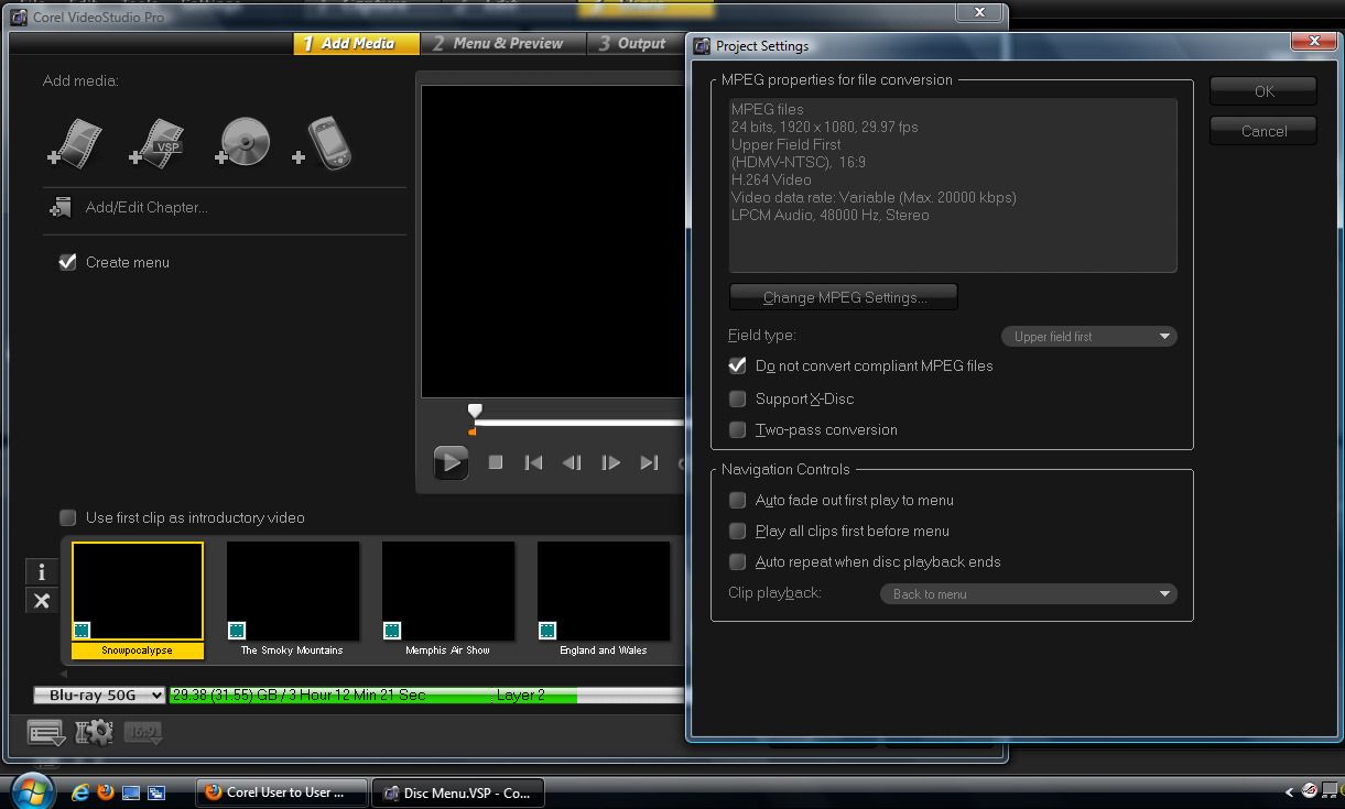 ANYWAYS, what kind of project settings do I need to be using in VS? I will be playing the disc in a PS3 (not sure if that matters as opposed to a regular BD player). I finally managed to produce a successful burn, but it was only able to play once in my PS3 - for some reason after it initially played fine, it wouldn't play again even though there was no damage to the disc. The disc was a BD-RE DL by Maxell. I had previously tried BD-DL Verbatim discs, but I was never able to finish a burn with those, and I got tired of flushing my money down the toilet on those.