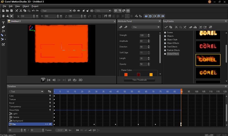 I can't seem to get the fire from the global effects to work on text. When I try to apply the effect, I get a block of "fire" over the text. Here are a couple of before and after pics: